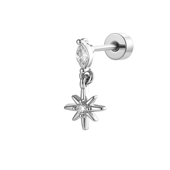 أقراط مرصعة بالفولاذ التيتانيوم بسيطة وحساسة من الزركونيوم نجمة متعددة الاستخدامات ، ثقب غضروف ناعم