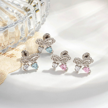 2025 nuevos pendientes de cartílago de circón de dos tonos de corte de Rosa dulce y delicado de 4mm, pendientes bonitos y elegantes para niñas