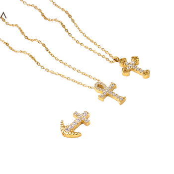 Women's Retro Versatile Full Diamond Cross Necklace Trendy Hip Hop Style Gold Plated Rope Chain for Sweater Personalized Jewelry